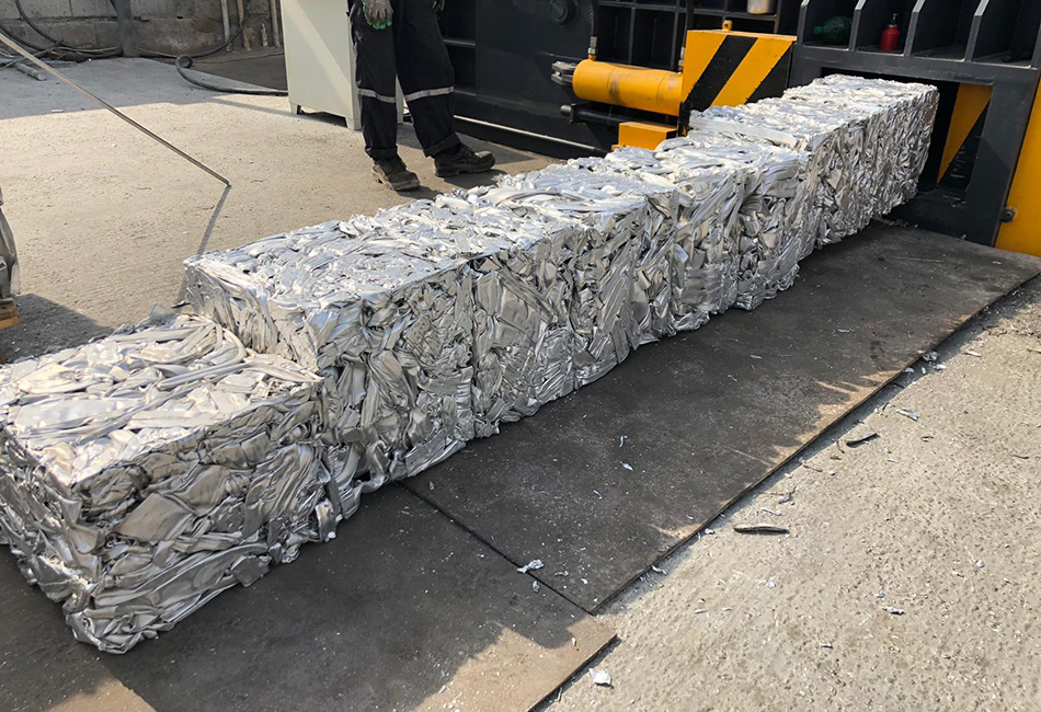 Under the drive of the hydraulic system, waste metal is compressed into compact metal bundles.